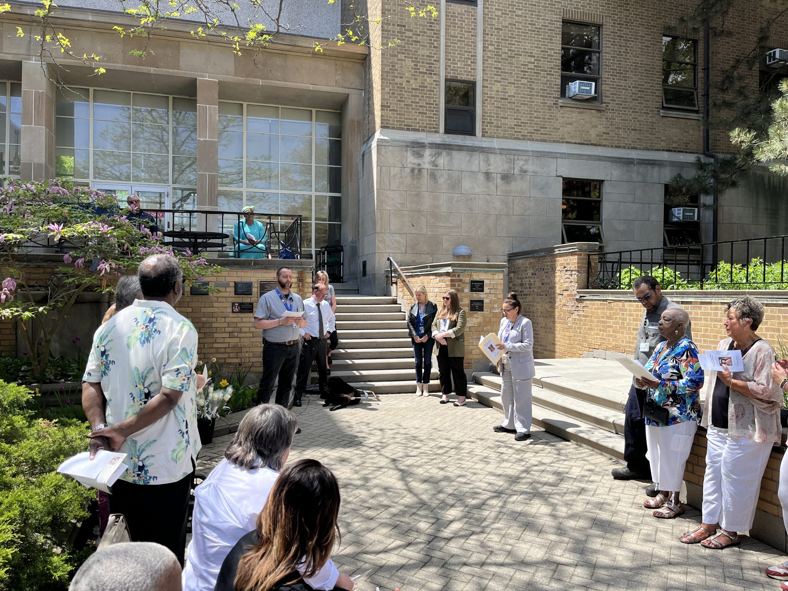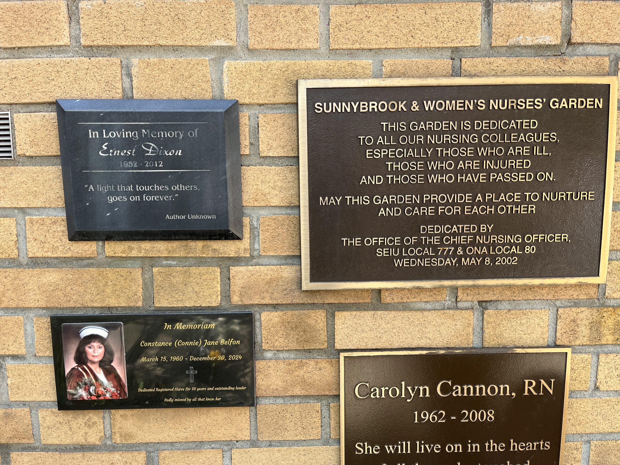 Members of ONA Local 080 gathered at the Sunnybrook Memorial Garden to honour the life and legacy of our dear colleague and friend, Connie Belfon.